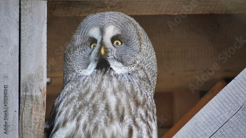 Fototapeta premium Great Gray Owl Face in Bielefeld Germany