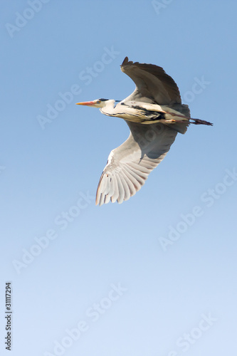 © Floriana, Obraz premium great grey heron in flight against the blue sky / Ardea cinerea