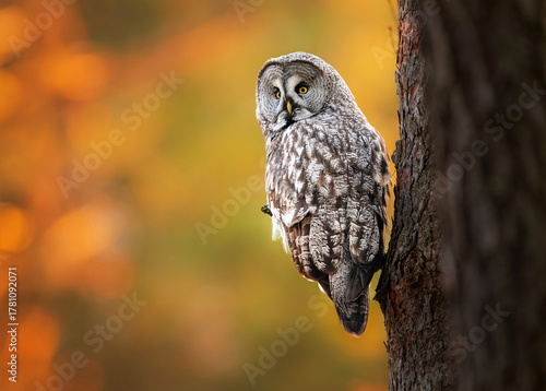 © Piotr Krzeslak, Naklejka premium Great grey owl ( Strix nebulosa ) close up