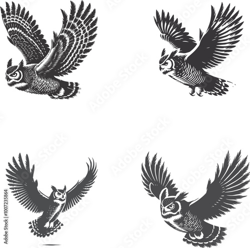 Obraz premium Great Horned Owl Flying Pose Silhouette | High-Quality Vector Illustration
