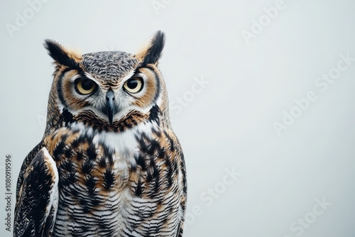 © Md.BalalHossain, Fototapeta premium great horned owl in flight on white