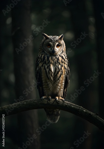 © Techno, Fototapeta premium great horned owl sitting on branch