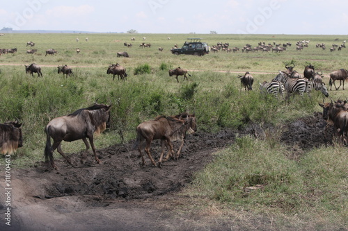 Naklejka premium Great Migration Serengeti, Wildebeest and Zebras