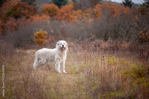 Fototapeta premium Great Pyrenees dog in the autumn medow