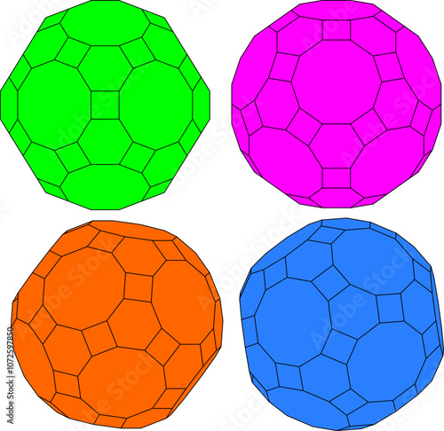 © mete, Fototapeta premium Great Rhombicosidodecahedron Vector Set – Detailed Polyhedron Geometry Illustrations for Art, Design, and Education