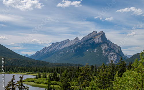 Naklejka premium Great Rocky Mountains under magnificent clouds and sunlight, at Banff National Park, Calgary, Canada