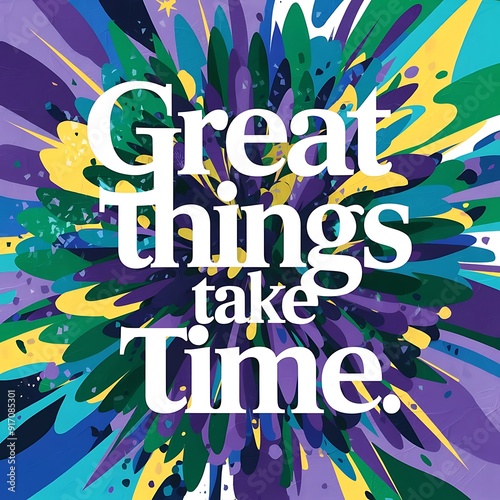 © Kartik, Fototapeta premium Great things take time colorful background and text (T-shirt Design Motivational Quote, Illustration ,Typography)