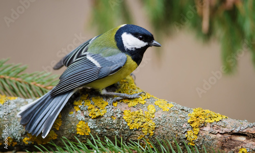 Fototapeta premium Great Tit and Christmas Tree