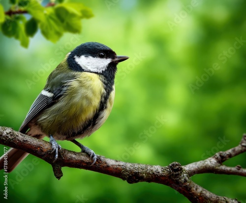 Obraz premium Great tit bird perched on branch in peaceful forest setting
