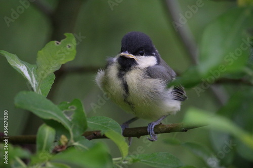 Obraz premium Great tit chick on a branch.