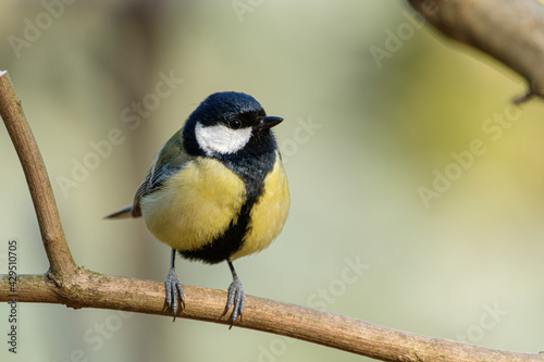 © Jérôme Bouche, Obraz premium Great tit close-up on a branch on beautiful color background