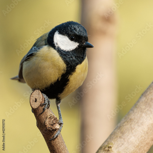 © Jérôme Bouche, Obraz premium Great tit close-up on a branch on beautiful color background
