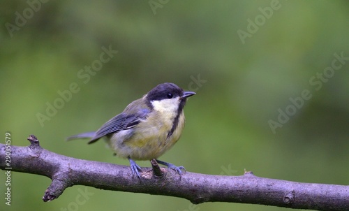 © Pavol Klimek, Naklejka premium Great tit eats sunflower seed on a tree branch