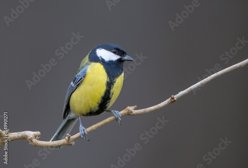 © Simonas, Fototapeta premium Great tit in spring at a wet forest