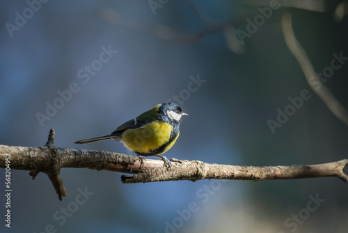 © Marc Andreu, Naklejka premium great tit on a branch blue dark background