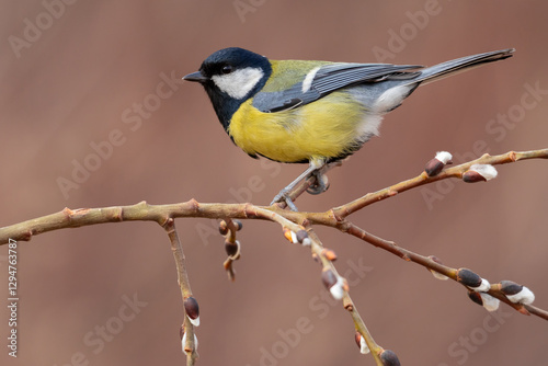 © Lukasz, Fototapeta premium great tit on a branch with catkins
