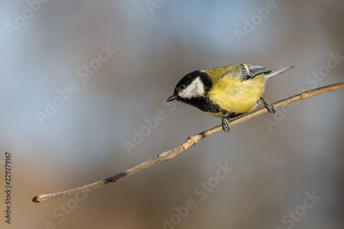 Fototapeta premium Great tit on a branch with sunlight