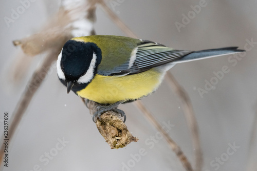Obraz premium Great tit (Parus major) - a bird of the titmouse family in its natural...