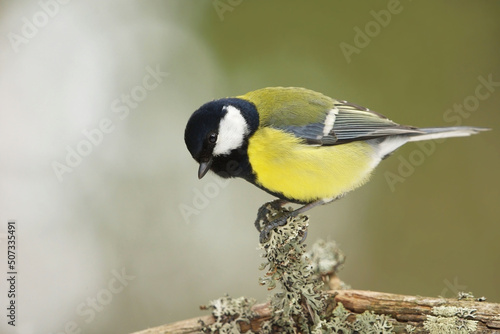 © Henri, Fototapeta premium Great tit (Parus major) in the forest searching for food.