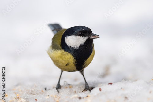 Naklejka premium Great Tit, Parus major in the natural environment in the winter. Novosibirsk...