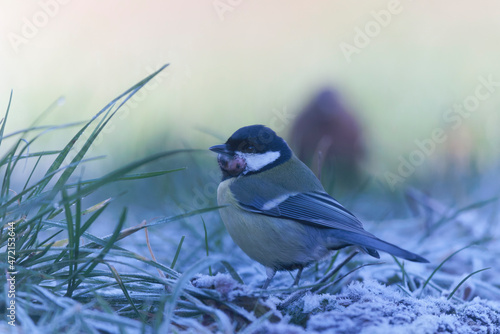 Obraz premium Great Tit Parus major infected by a poxvirose