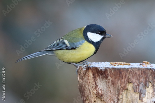 Obraz premium Great Tit (Parus major) on a cold frosty morning.