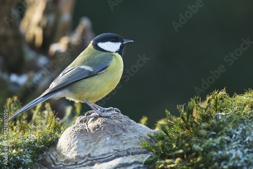 © Erhard Nerger/imageBROKER, Naklejka premium Great Tit (Parus major) sitting on stone, Lower Saxony, Germany, Europe