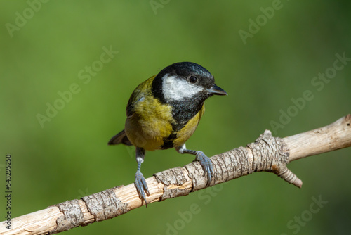 © Csar, Fototapeta premium Great Tit perched on a pine branch with a green background