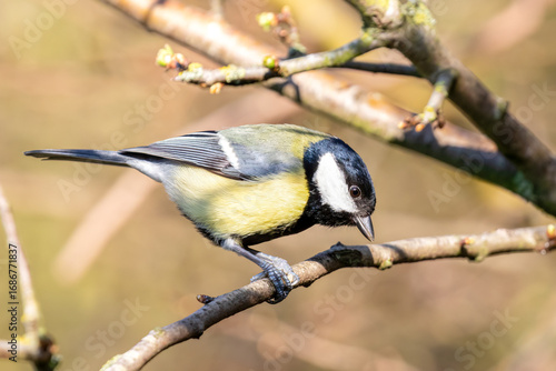 Fototapeta premium Great Tit Perching on Branch