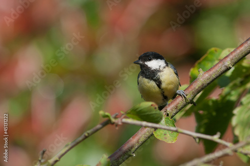 © Johan van Beilen, Obraz premium Great tit sitting on a branch with beautiful autumn colors