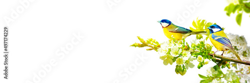 Obraz premium Great tit sitting on a tree branch in spring weather