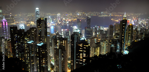 © Svetlana, Obraz premium Great view of glittering Hong Kong at night