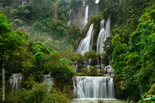 © MrSathit, Naklejka premium Great waterfall in Thailand. Beautiful waterfall in the green forest. Waterfall in tropical forest at Umpang National park, Tak, Thailand.