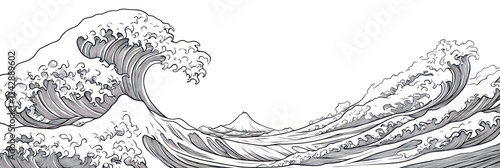 © LyceeChee, Naklejka premium Great Wave Off Kanagawa Line Art Drawing