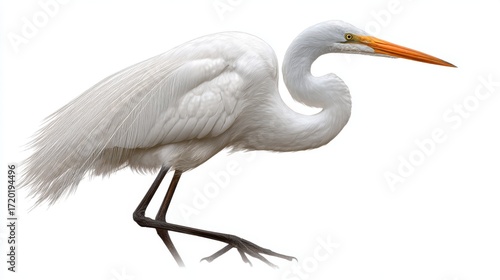 © Nayyab, Fototapeta premium Great white heron bird standing tall isolated on transparent background with elegant plumage and long neck waterfowl illustration for wildlife design and nature conservation projects