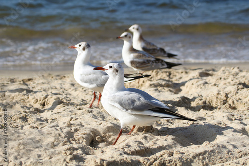Fototapeta premium Great white seagulls by the sea