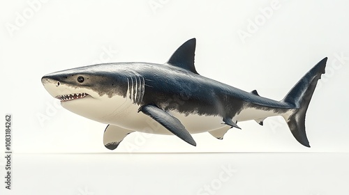 Obraz premium Great White Shark Attacking in White Studio Setting