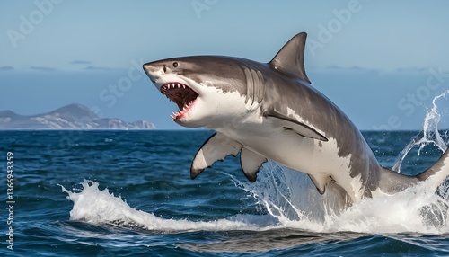Naklejka premium Great White Shark Breaching