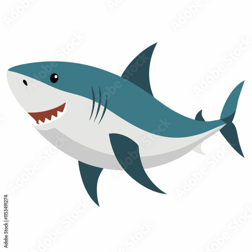 © Hafiz283, Obraz premium Great White Shark Colorful On White Background