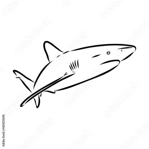 © Elala 9161, Fototapeta premium great white shark drawn in ink freehand sketch logo