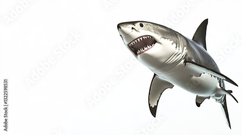 © Thanthara, Fototapeta premium Great white shark emerging on white background