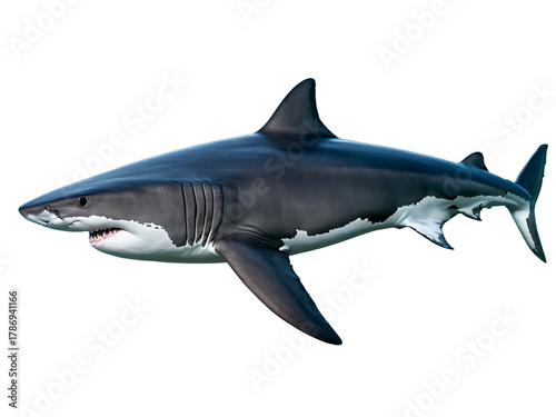 © Thanawadee, Obraz premium Great White Shark Head-On View Isolated on White Background
