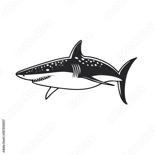 Fototapeta premium Great white shark illustration swimming with teeth showing in black and white...