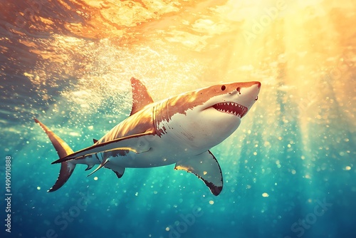 © bocil, Fototapeta premium Great White Shark in Sunlight