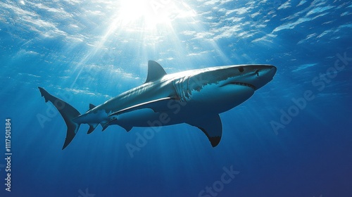 © Entri, Fototapeta premium Great White Shark in Sunlit Waters