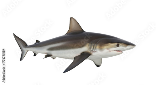 Fototapeta premium Great white shark isolated on white background showing majestic ocean predator
