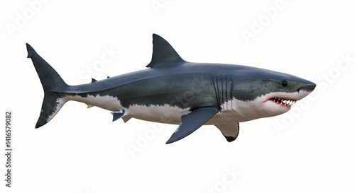 © Vanier Johanne, Fototapeta premium Great White Shark Isolated on White Background Swimming
