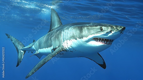 Fototapeta premium Great White Shark: Majestic Predator of the Ocean Depths
