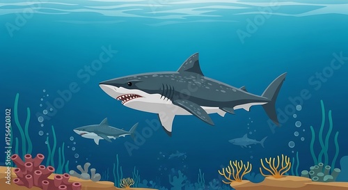 Obraz premium Great White Shark Ocean Reef.