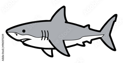 © Roman, Fototapeta premium Great white shark side view vector icon on white. Generative AI